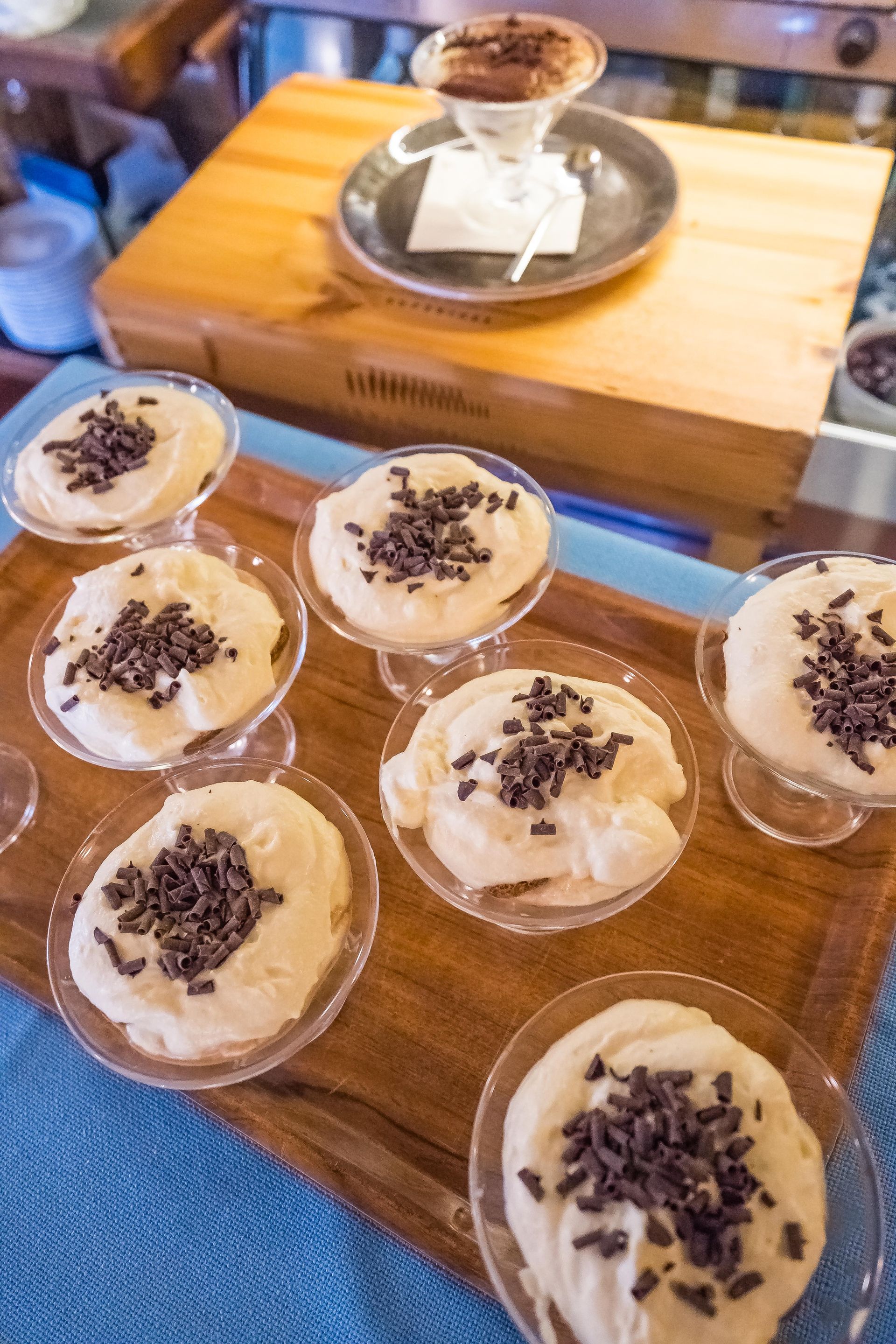 Creme caramel in amaretto, cheese cake, tiramisù, soufflè caldo al cioccolato,